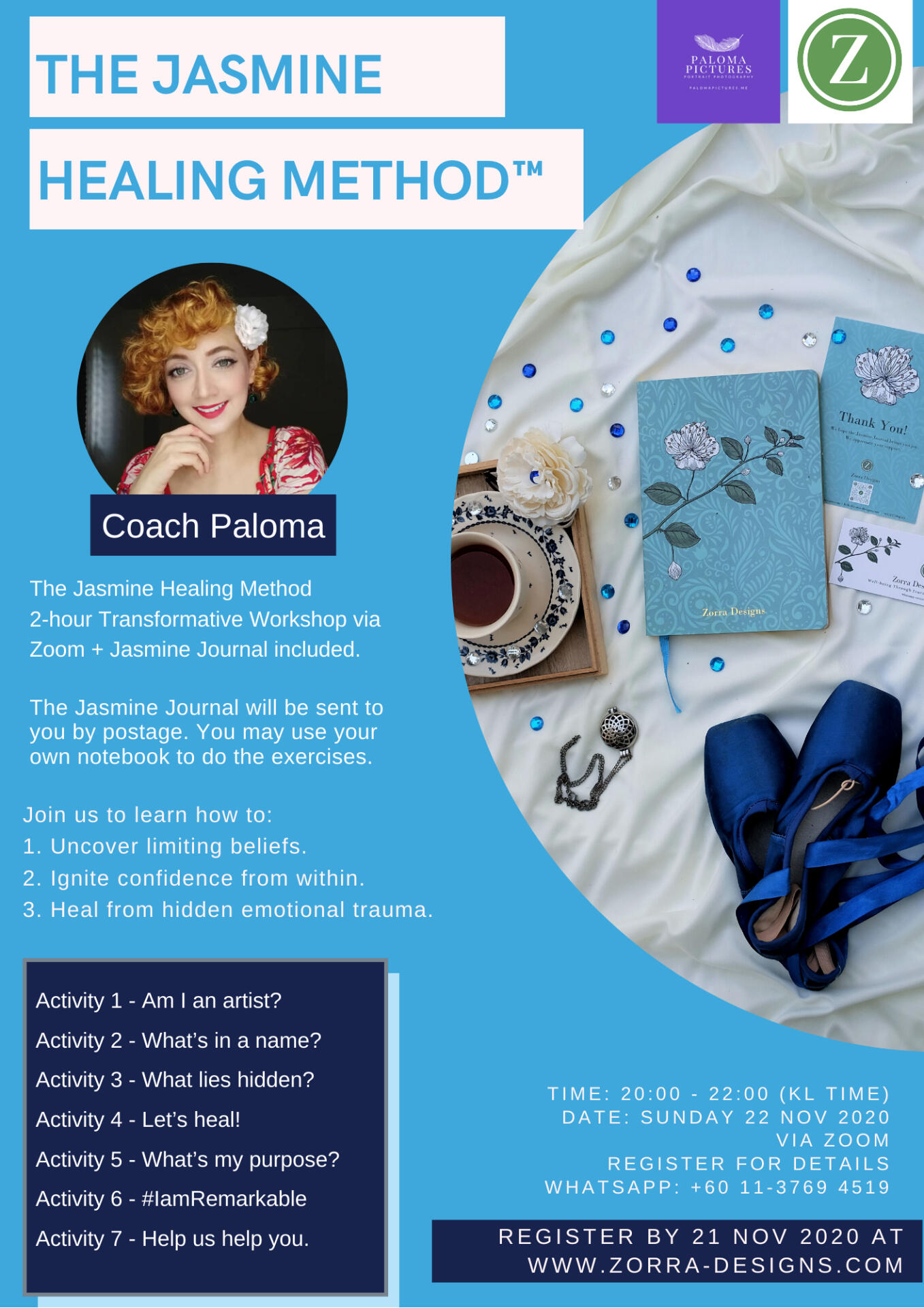 The Jasmine Healing Method: RM120 for a Two-Hour Workshop + Jasmine Journal included.